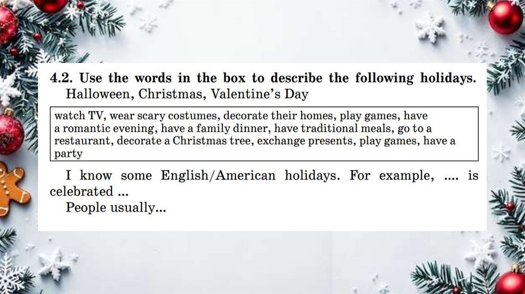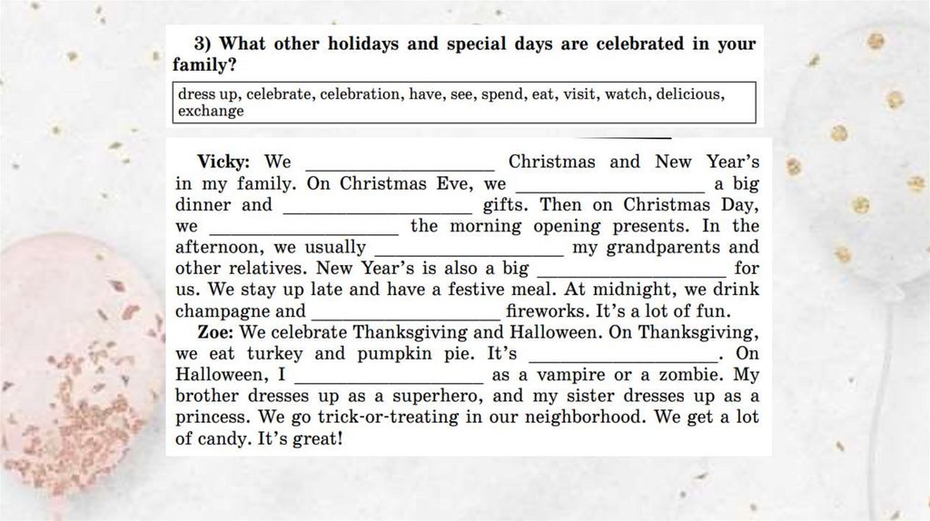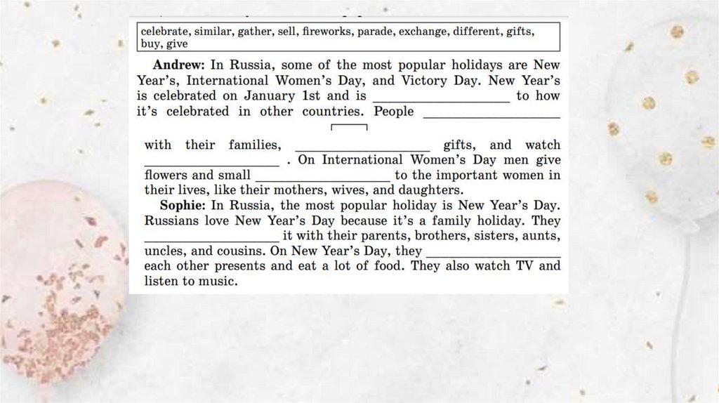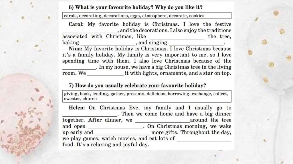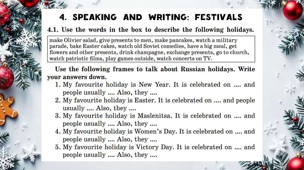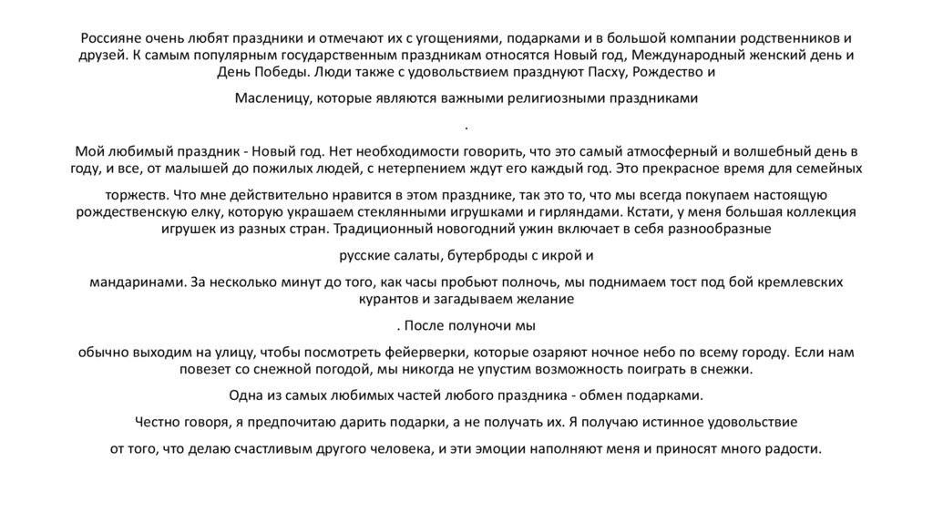 вкусную еду and обмениваемся presents, I don’t like it because there are too