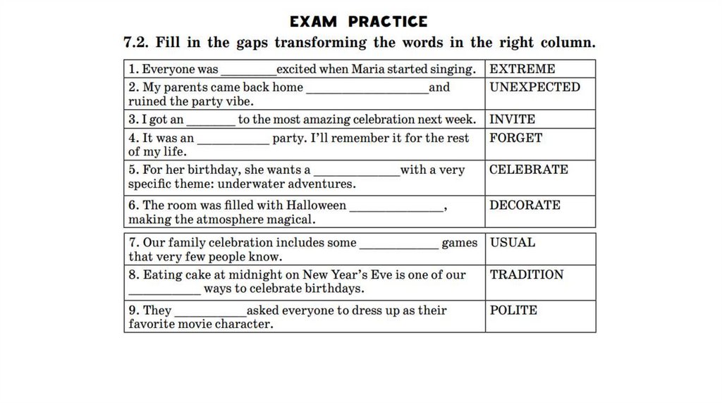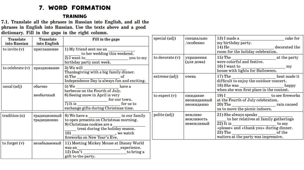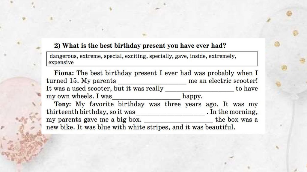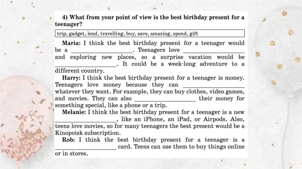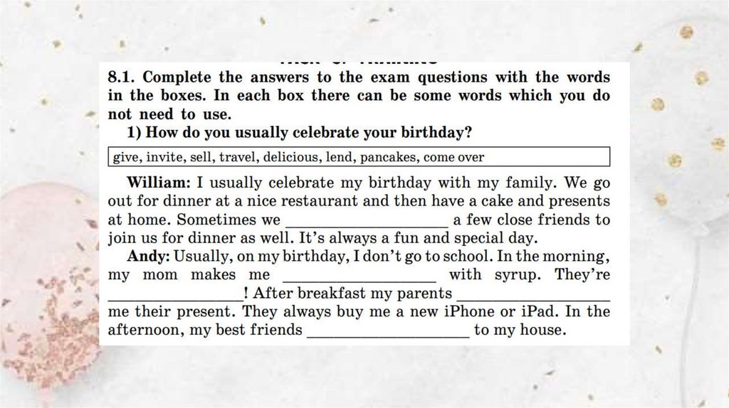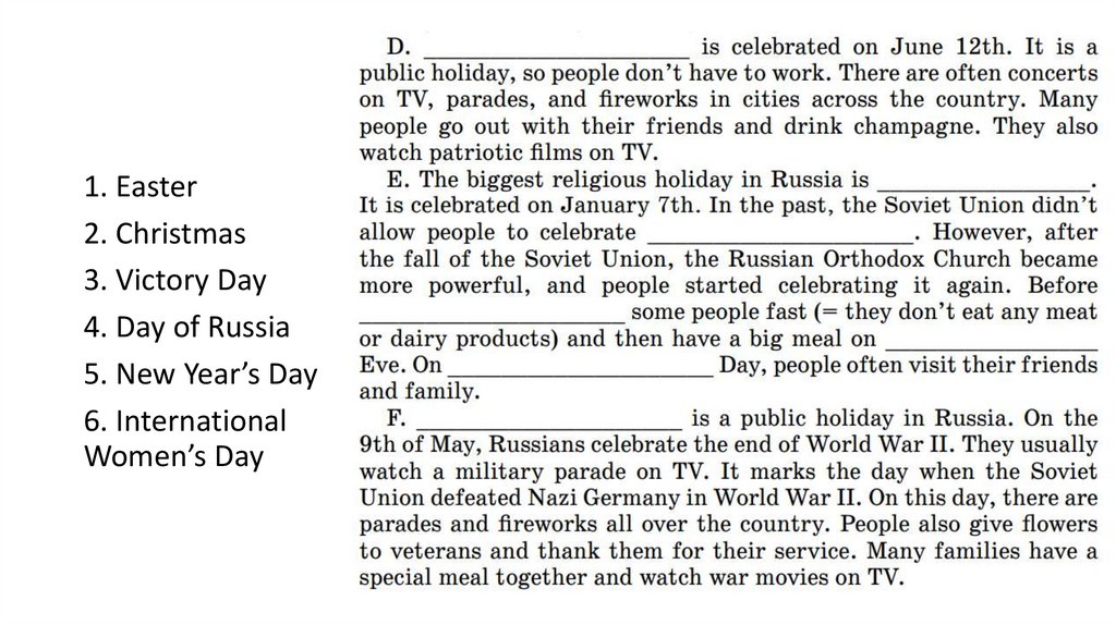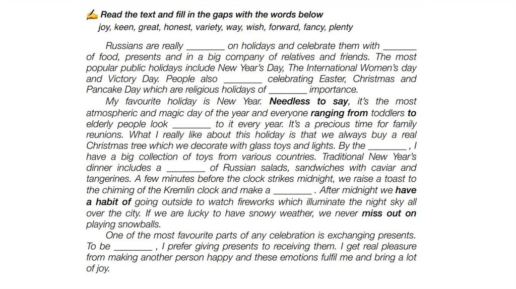 вкусную еду and обмениваемся presents, I don’t like it because there are too