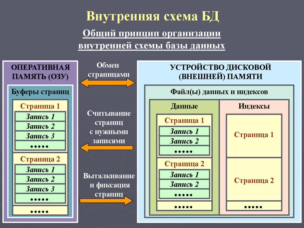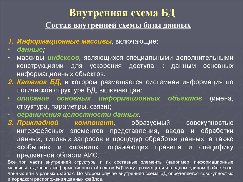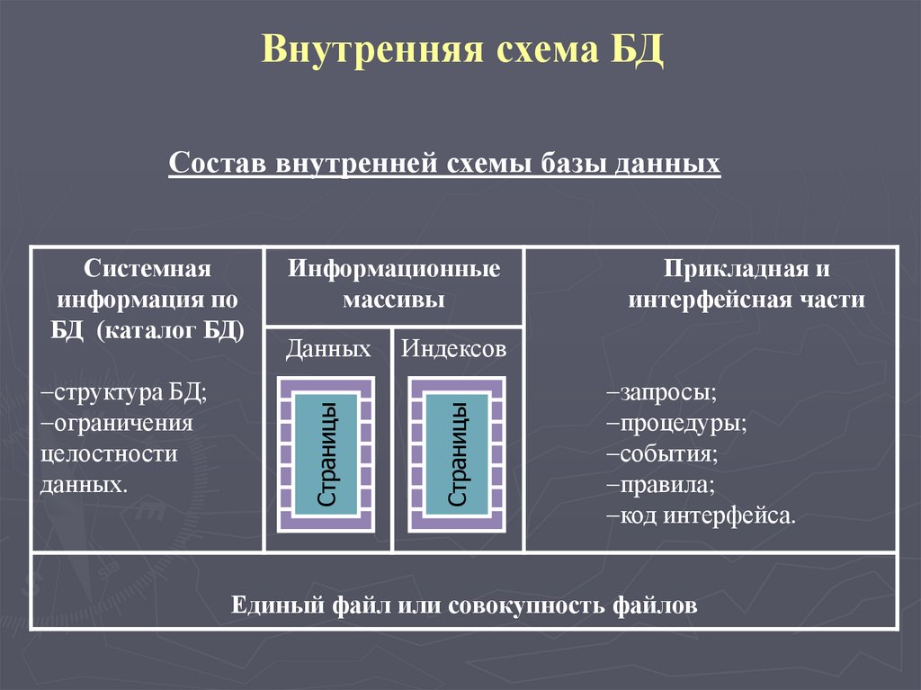 Внутренняя схема БДСостав внутренней схемы базы данных