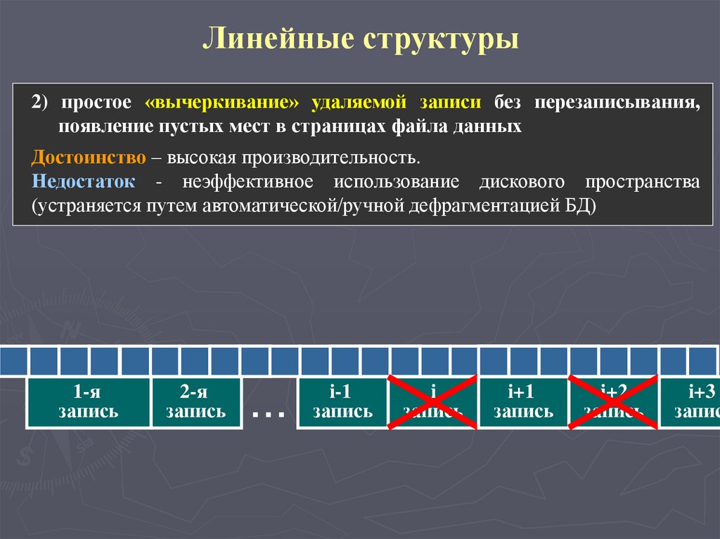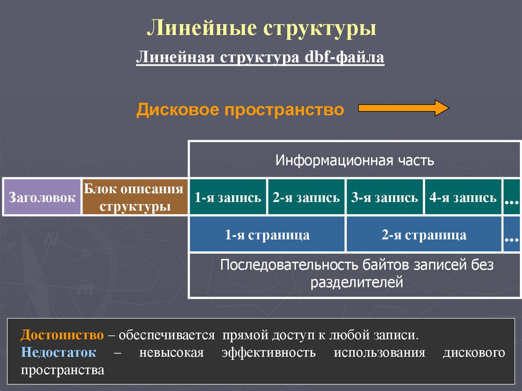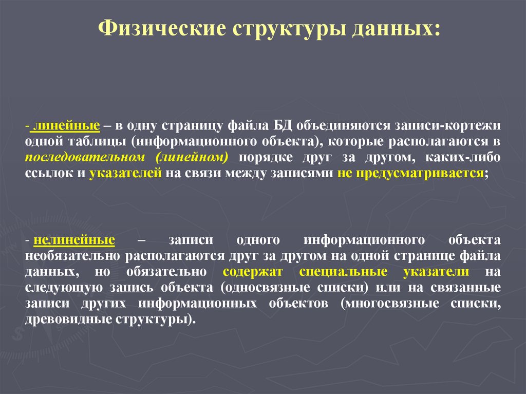 Физические структуры данных:- линейные – в одну страницу файла БД объединяются записи-кортежи
