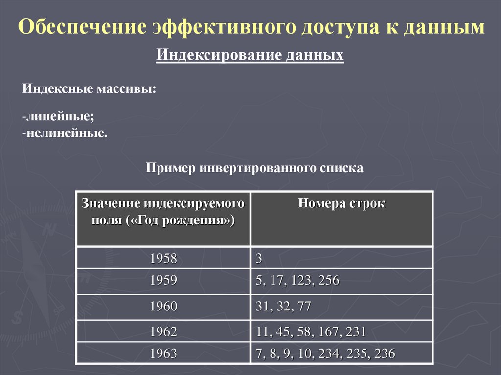 Обеспечение эффективного доступа к даннымИндексирование данных