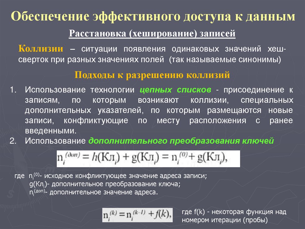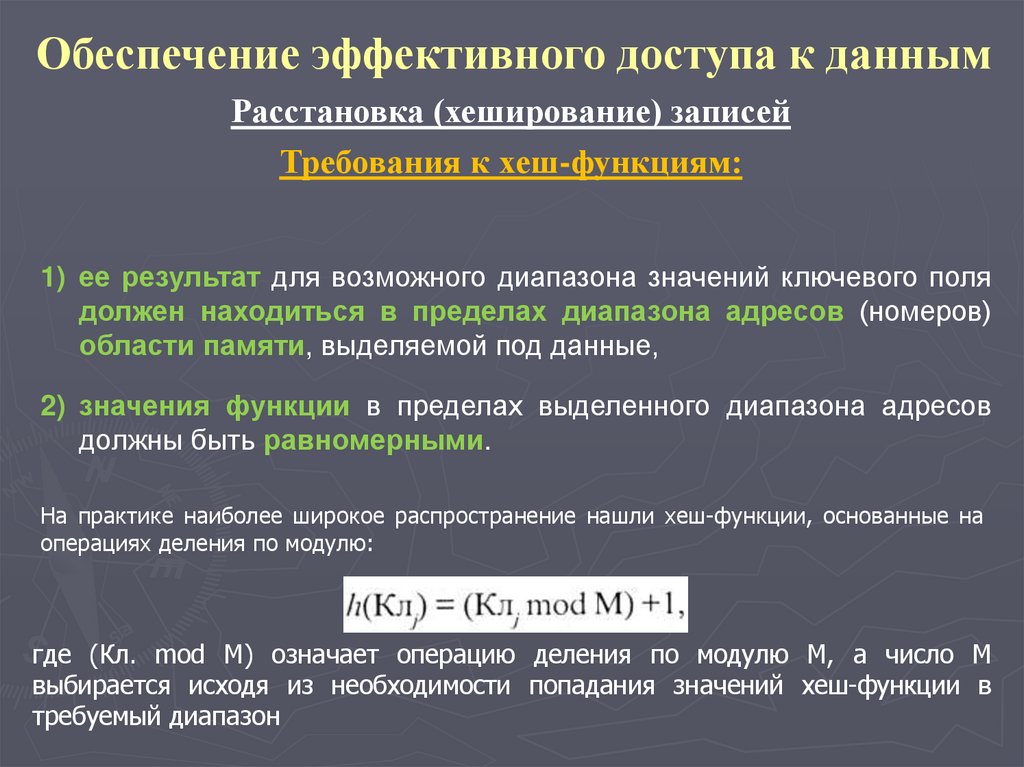 Обеспечение эффективного доступа к даннымРасстановка (хеширование) записей