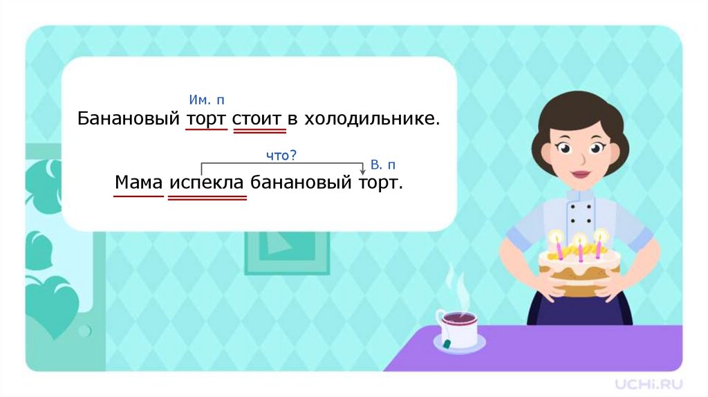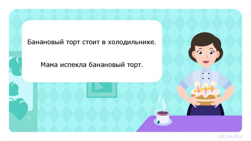 Банановый торт стоит в холодильнике.Мама испекла банановый торт.