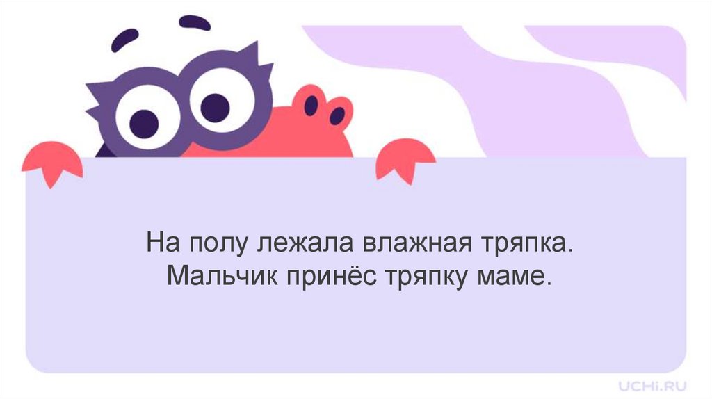 На полу лежала влажная тряпка.Мальчик принёс тряпку маме.