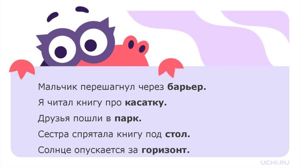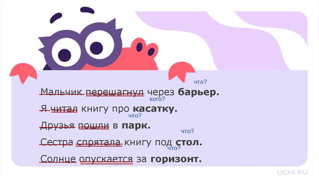 Мальчик перешагнул через барьер.Я читал книгу про касатку.