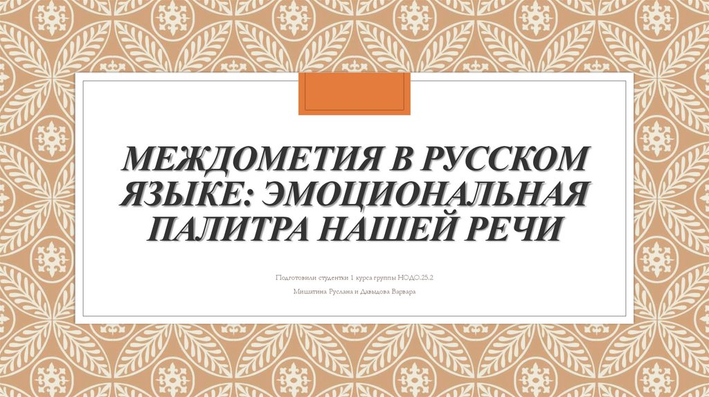МЕЖДОМЕТИЯ В РУССКОМЯЗЫКЕ: ЭМОЦИОНАЛЬНАЯ