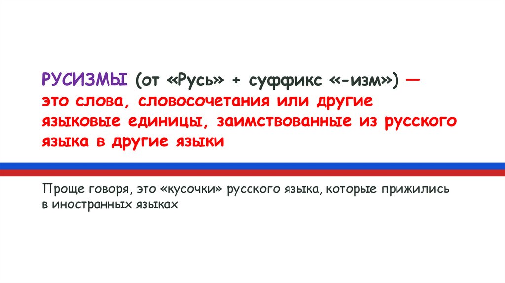 РУСИЗМЫ (от «Русь» + суффикс «-изм») —это слова, словосочетания или другие