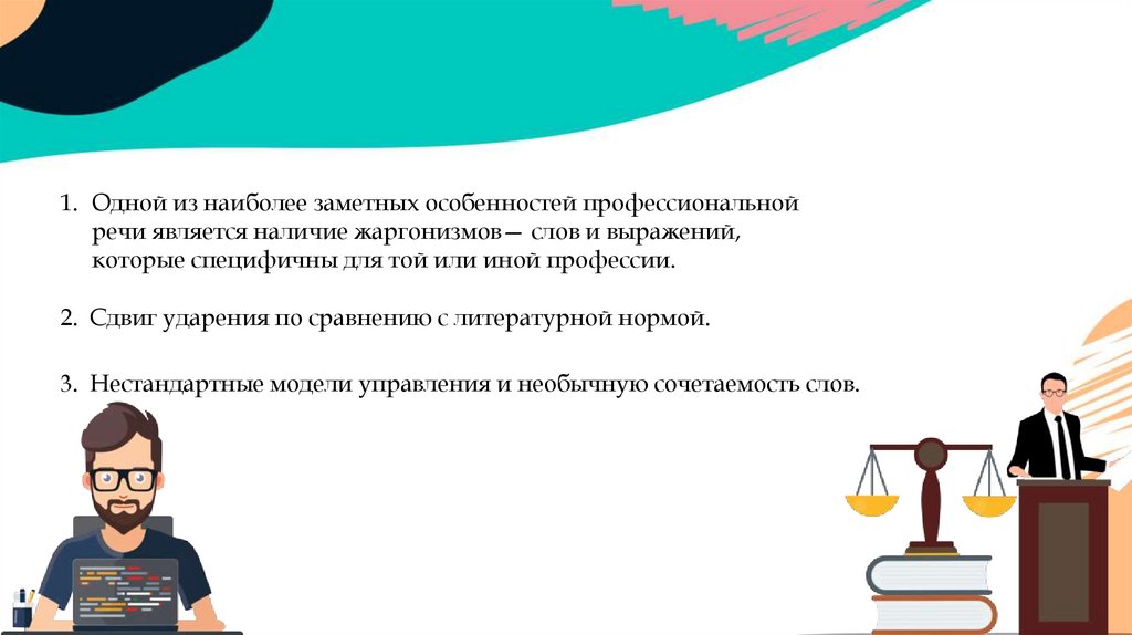 1. Одной из наиболее заметных особенностей профессиональнойречи является наличие жаргонизмов— слов и выражений,