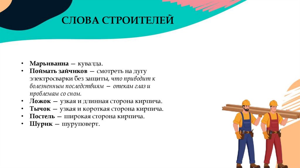 СЛОВА СТРОИТЕЛЕЙ• Марьиванна — кувалда.