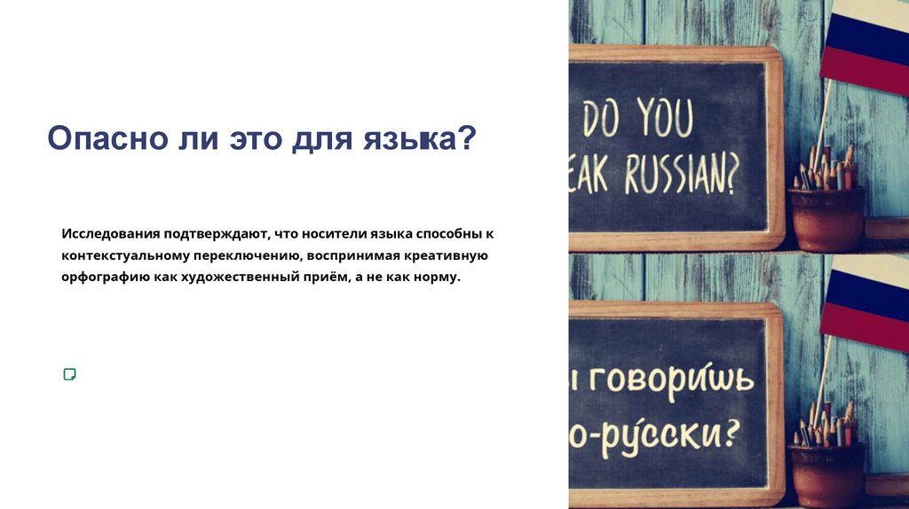 Опасно ли это для языка?Исследования подтверждают, что носители языка способны к