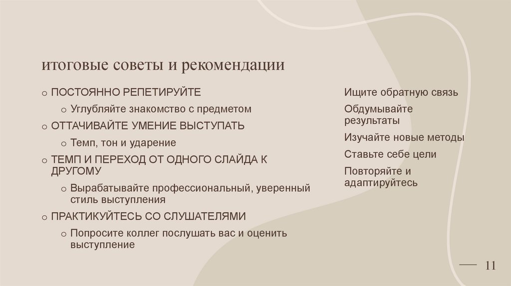 итоговые советы и рекомендацииo ПОСТОЯННО РЕПЕТИРУЙТЕ