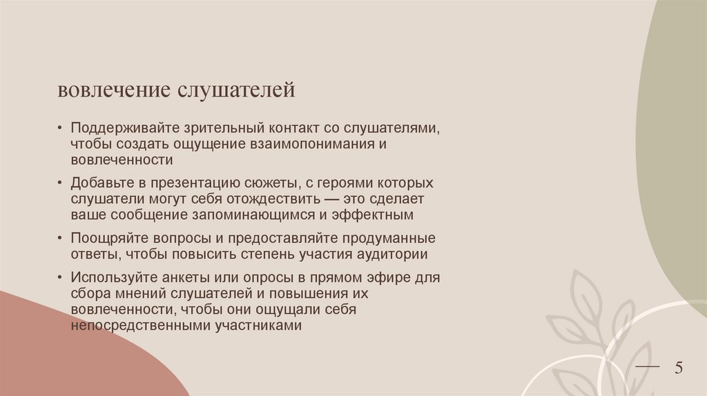 вовлечение слушателей• Поддерживайте зрительный контакт со слушателями,