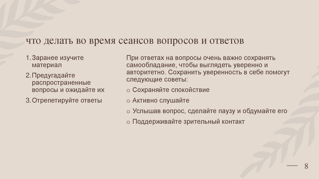 что делать во время сеансов вопросов и ответов1.Заранее изучите