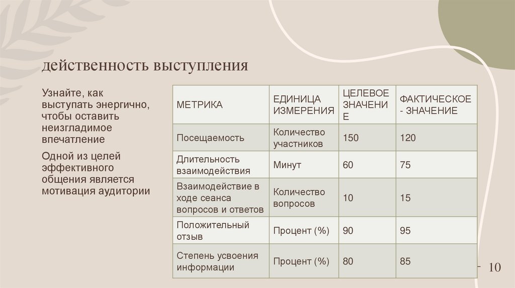 действенность выступленияВаша способность эффективно общаться
