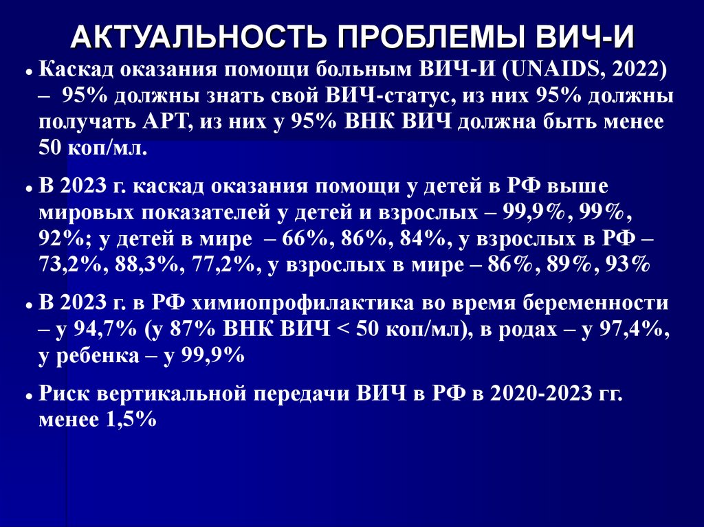 АКТУАЛЬНОСТЬ ПРОБЛЕМЫ ВИЧ-ИКаскад оказания помощи больным ВИЧ-И (UNAIDS, 2022)