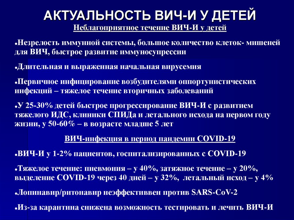 АКТУАЛЬНОСТЬ ВИЧ-И У ДЕТЕЙНеблагоприятное течение ВИЧ-И у детей