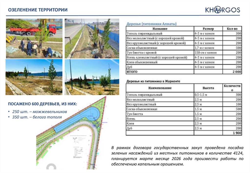 ОЗЕЛЕНЕНИЕ ТЕРРИТОРИИПОСАЖЕНО 600 ДЕРЕВЬЕВ, ИЗ НИХ: