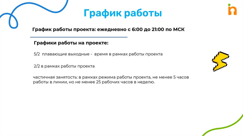 работы в линии, но не менее 25 рабочих часов в неделю.