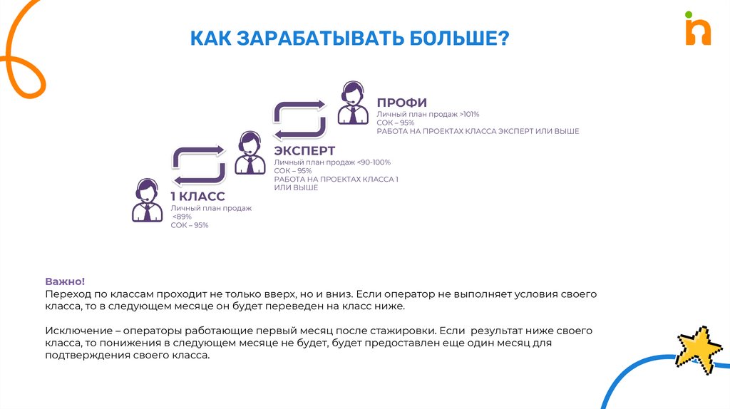 Исключение – операторы работающие первый месяц после стажировки. Если результат ниже своего