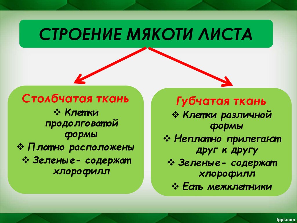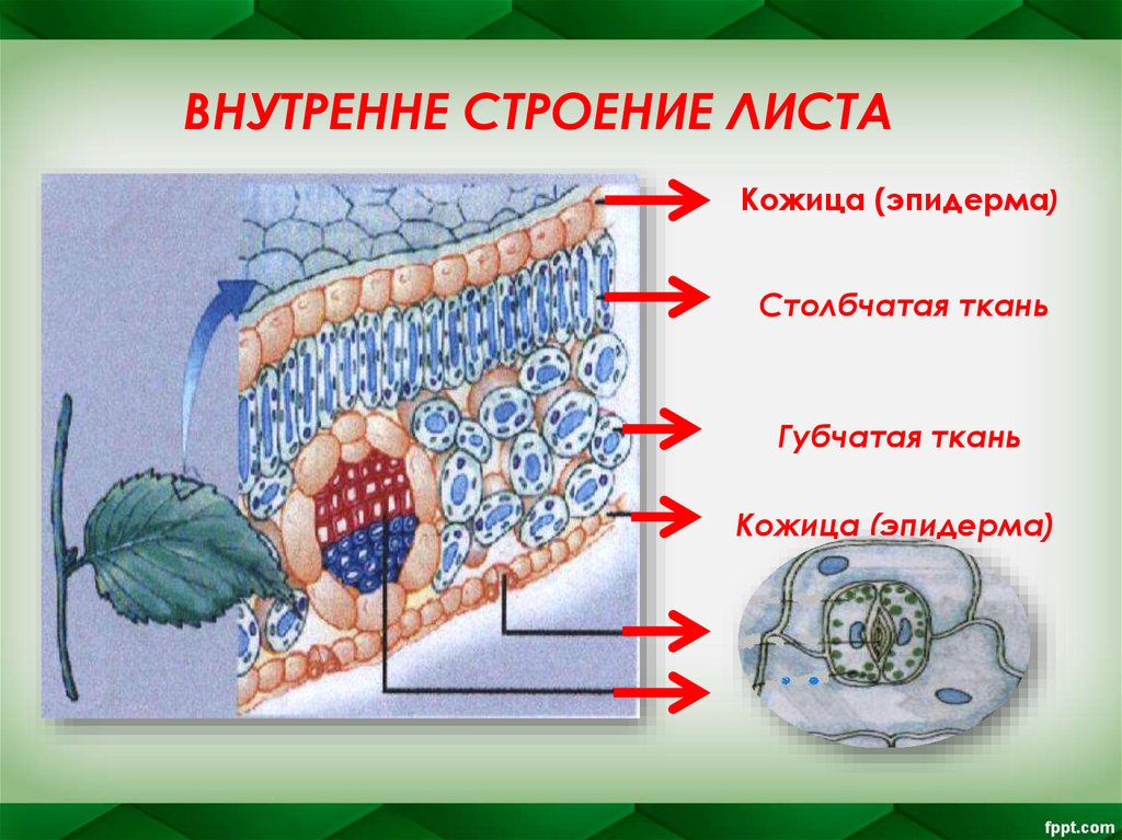 Как правило, лист состоит из следующих тканей:Эпидермис — слой клеток, которые защищают от вредного