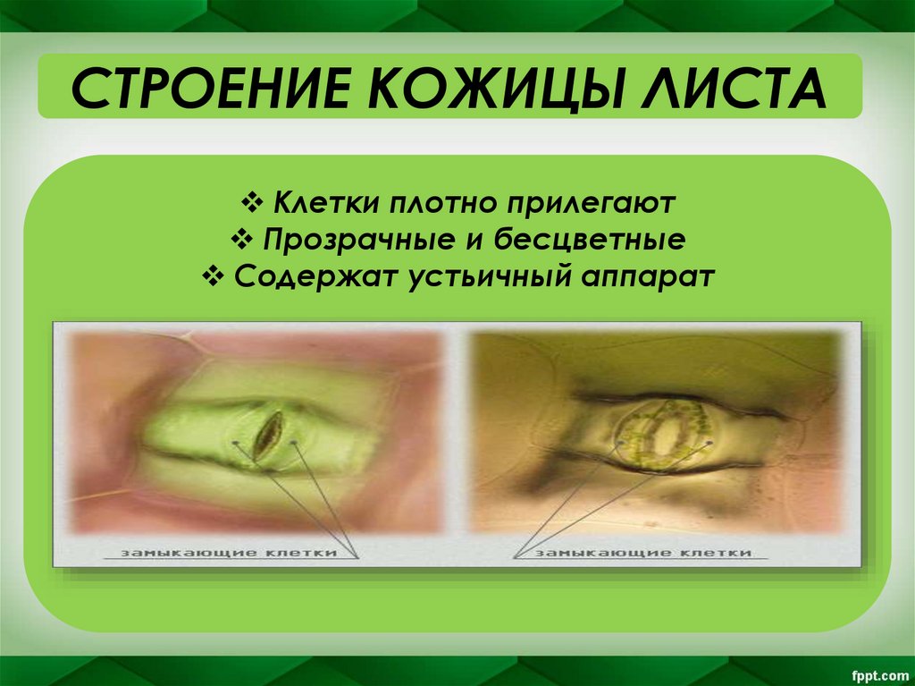 СТРОЕНИЕ КОЖИЦЫ ЛИСТАКлетки плотно прилегают