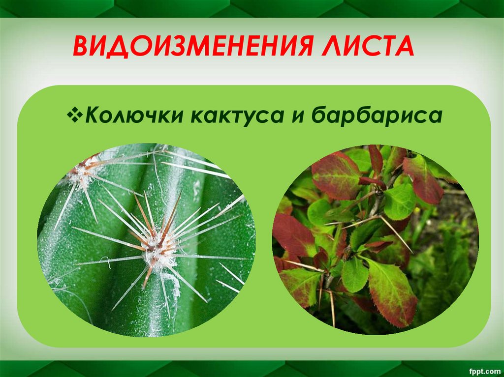 ВИДОИЗМЕНЕНИЯ ЛИСТАКолючки кактуса и барбариса
