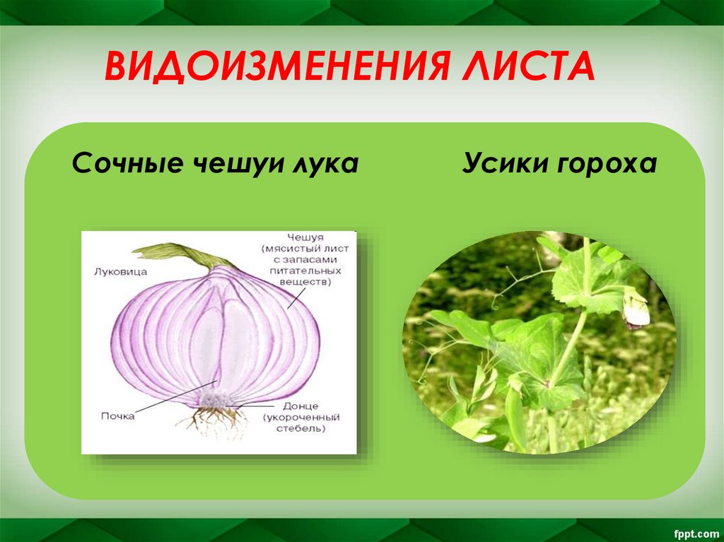 ВИДОИЗМЕНЕНИЯ ЛИСТАСочные чешуи лука