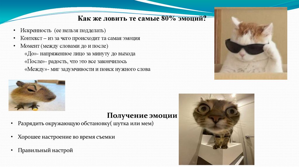 Как же ловить те самые 80% эмоций?• Искренность (ее нельзя подделать)