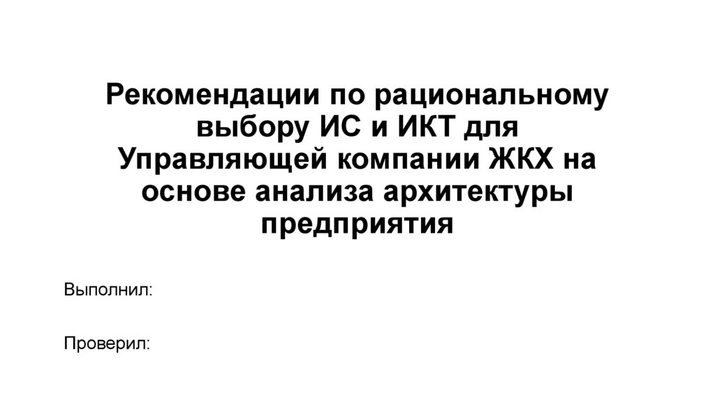1. Рекомендации по рациональному выбору ИС и ИКТ для Управляющей компании ЖКХ на основе анализа архитектуры предприятия