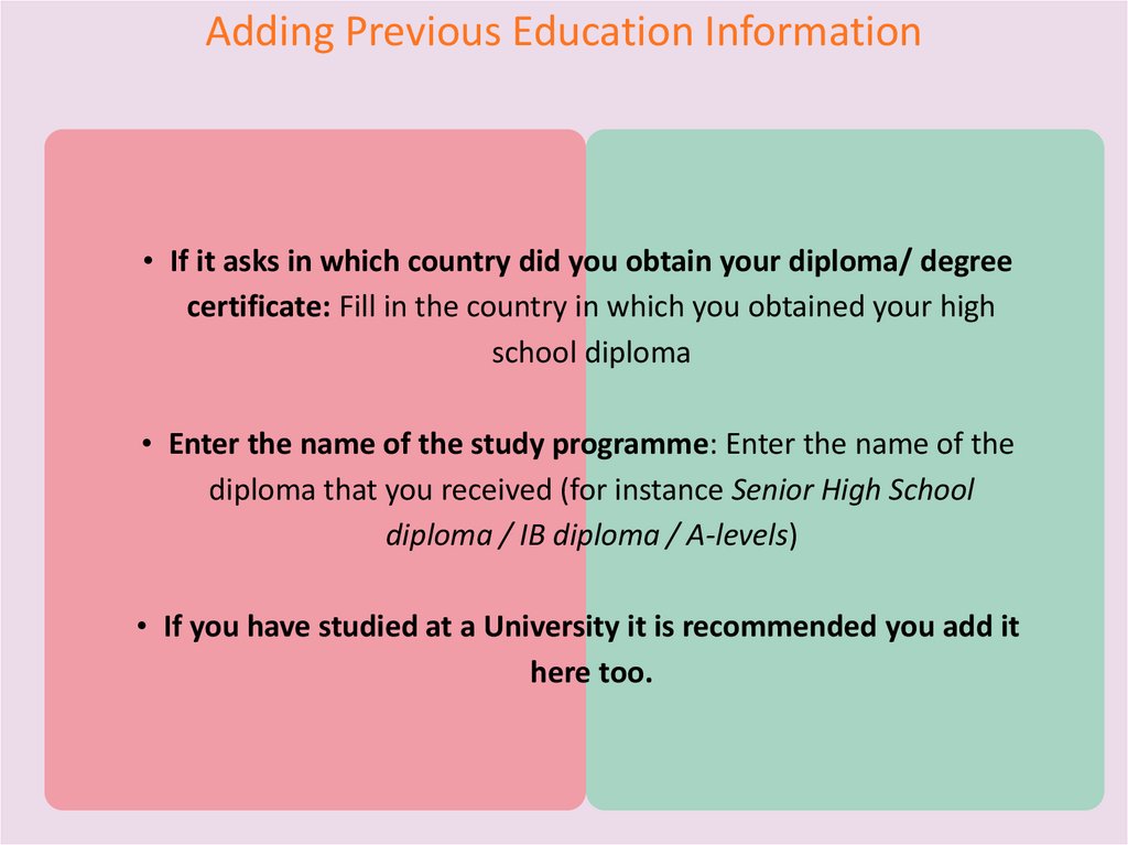 • Check the details you filled in: WO/HBO Bachelor, Name of Study Programme,