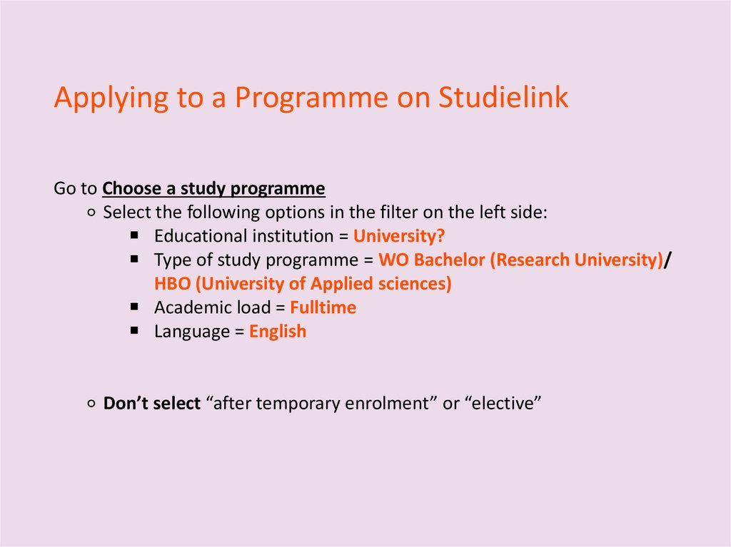 3.Studielink. Open your account and indicate yourintention to apply for a programme
