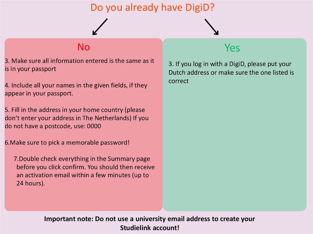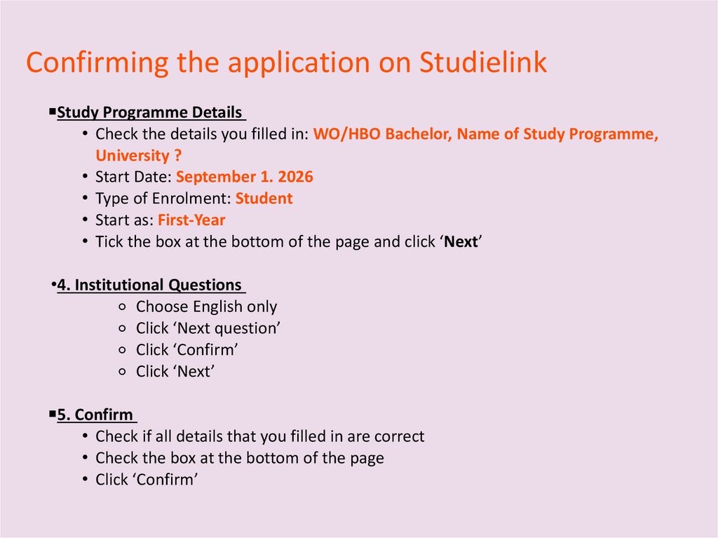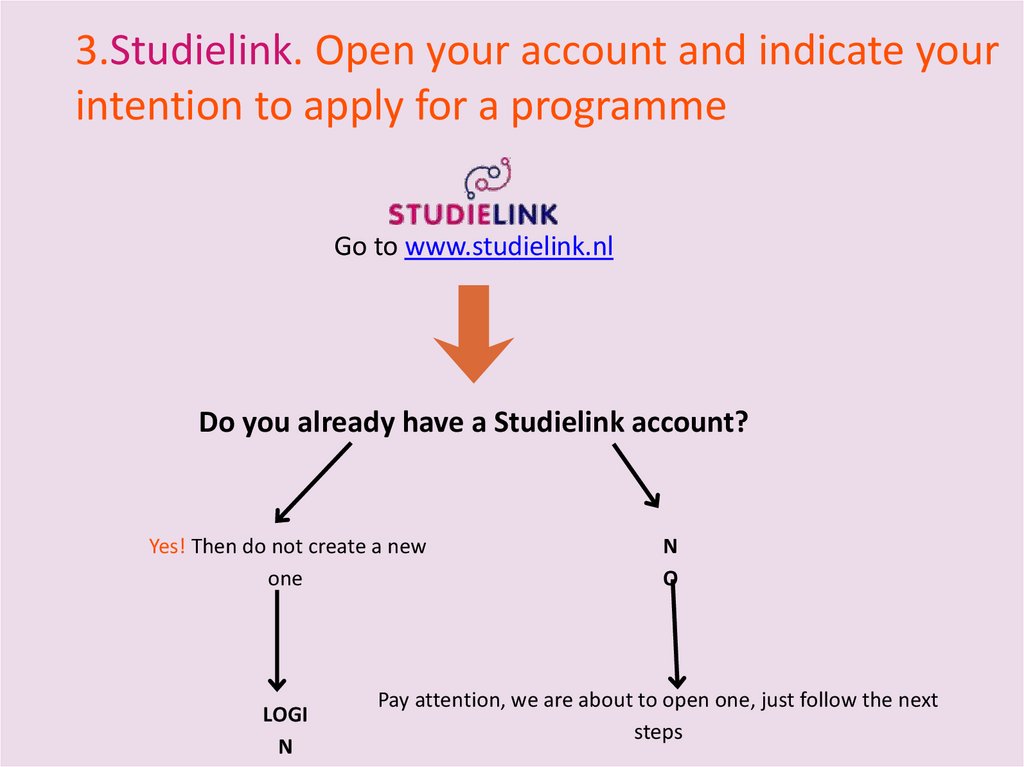3.Studielink Step-by-stepOpen your account and indicate your intention to