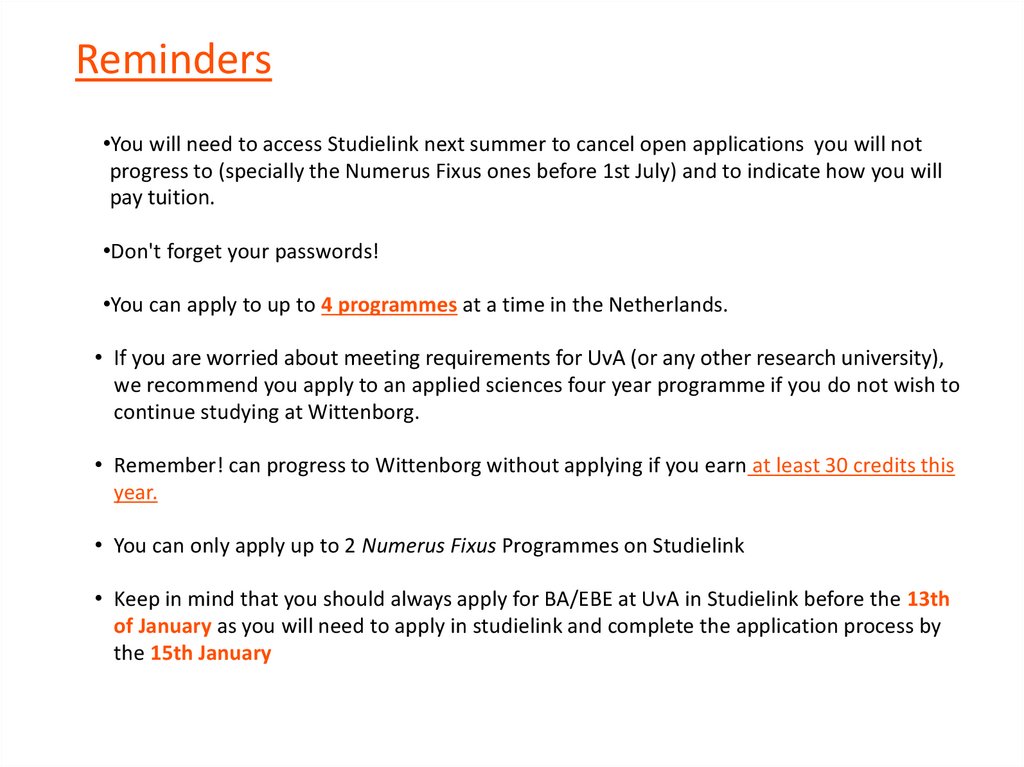 • Keep in mind that you should always apply for BA/EBE at UvA in Studielink before the 13th