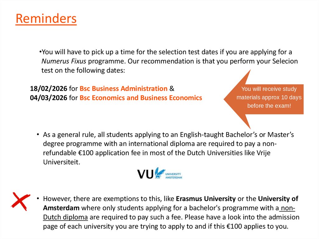 • You can only apply up to 2 Numerus Fixus Programmes on Studielink