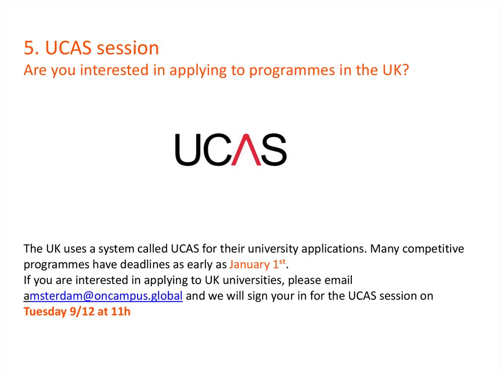 amsterdam@oncampus.global and we will sign your in for the UCAS session on