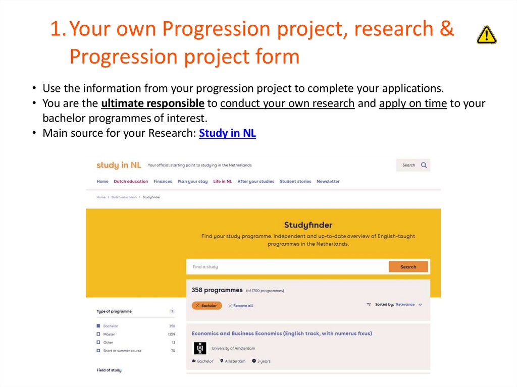 • You are the ultimate responsible to conduct your own research and apply on time to your
