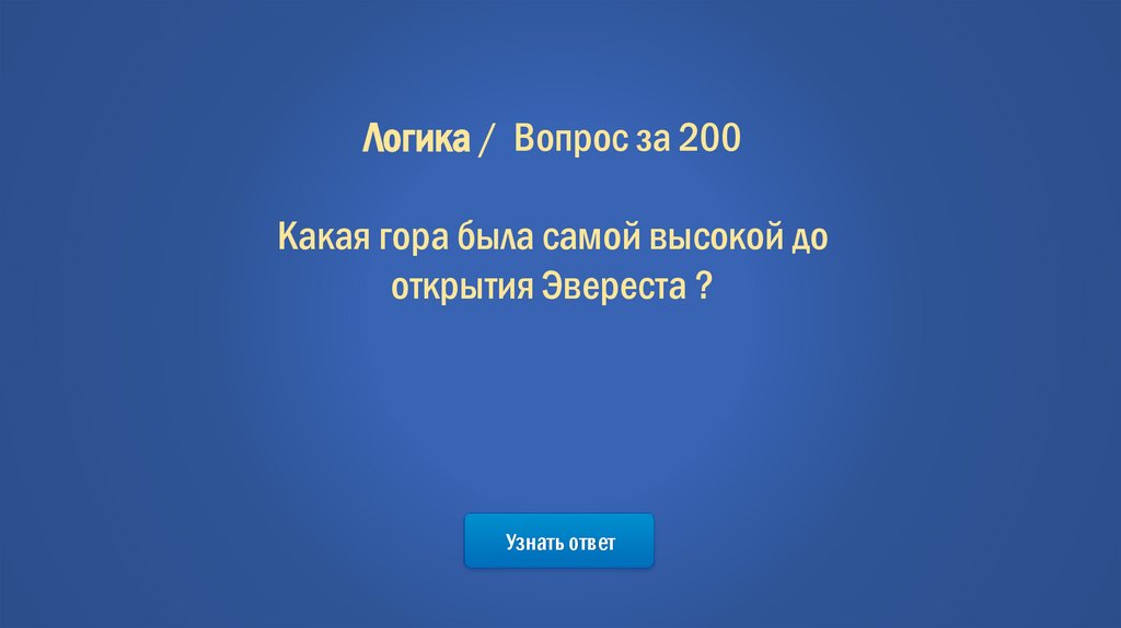12. Правильный ответ Логика / Вопрос за 200 Эверест