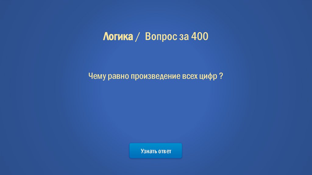 Логика / Вопрос за 400Чему равно произведение всех цифр ?