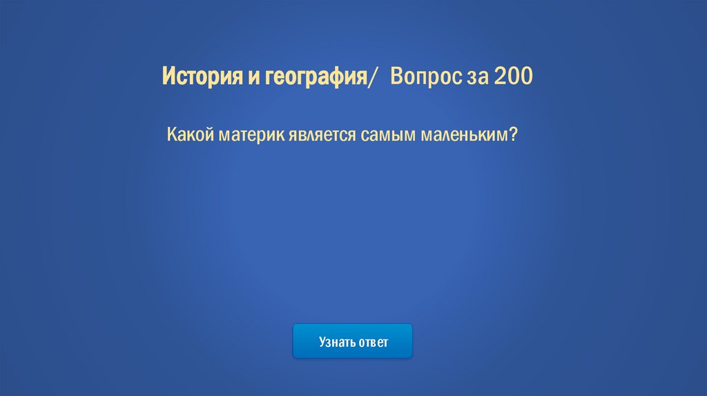20. Правильный ответ Категория 3 / Вопрос за 200 Австралия