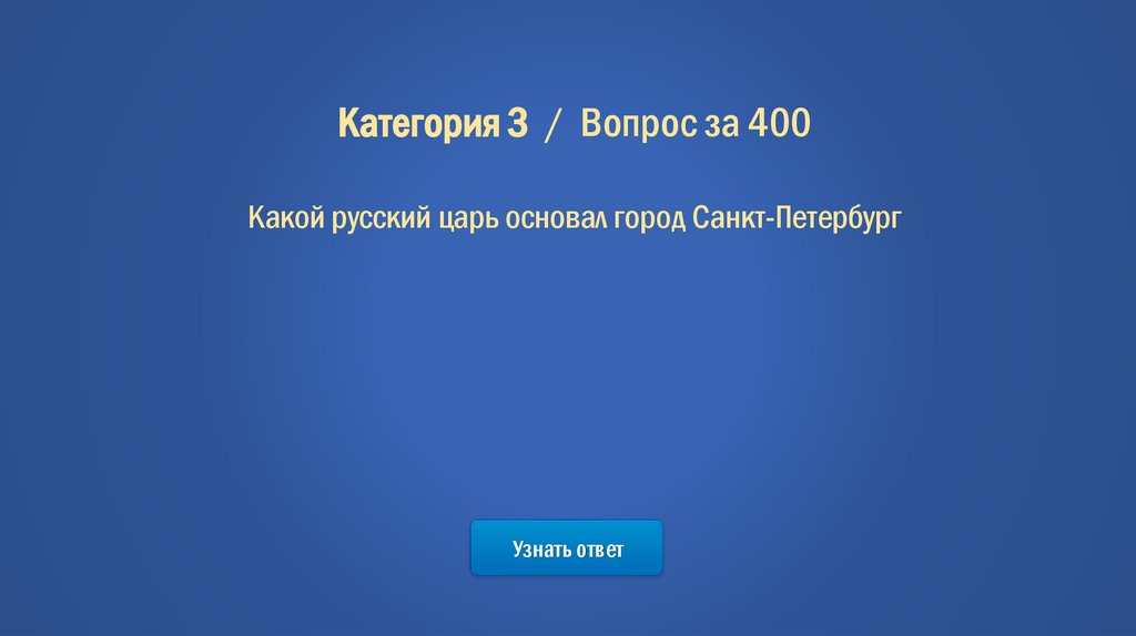22. Правильный ответ Категория 3 / Вопрос за 400 Петр 1
