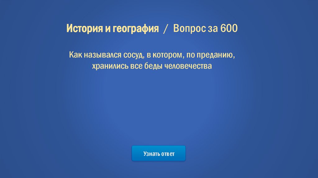 24. Правильный ответ История и география / Вопрос за 600 Ящик Пандоры