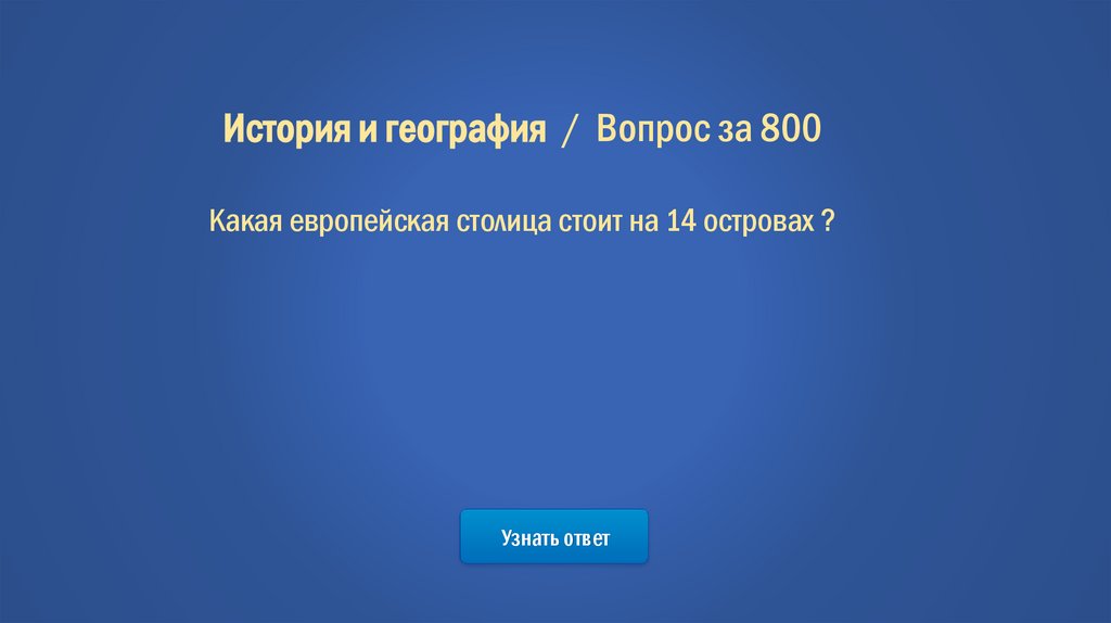 История и география / Вопрос за 800Какая европейская столица стоит на 14 островах ?