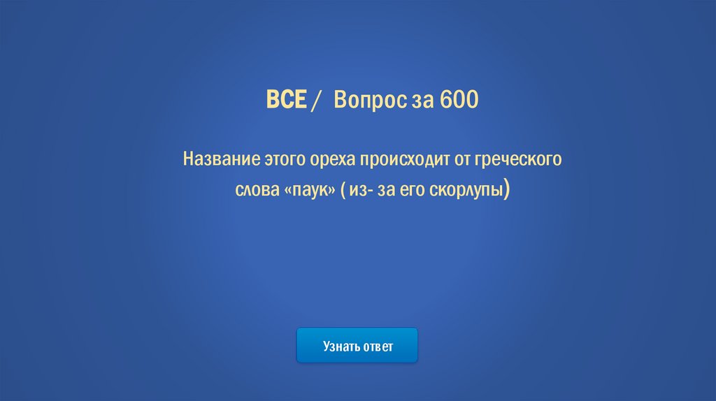 ВСЕ / Вопрос за 600Название этого ореха происходит от греческого
