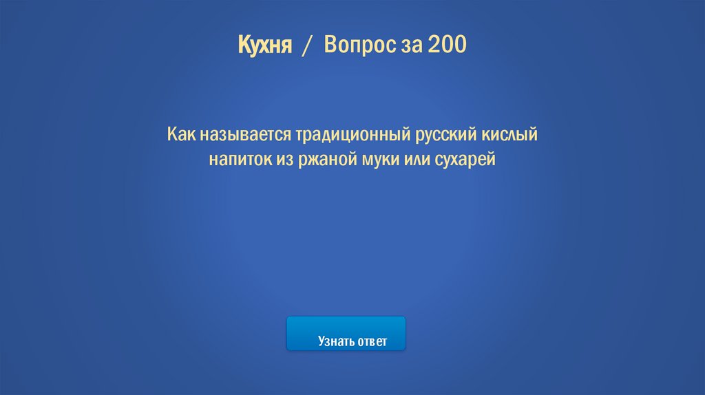 36. Правильный ответ Кухня/ Вопрос за 200 Квас