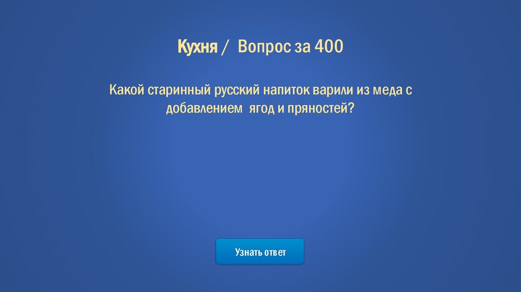 38. Правильный ответ Кухня / Вопрос за 400 Медовуха