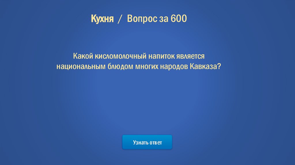 40. Правильный ответ Кухня / Вопрос за 600 Айран/ Кефир