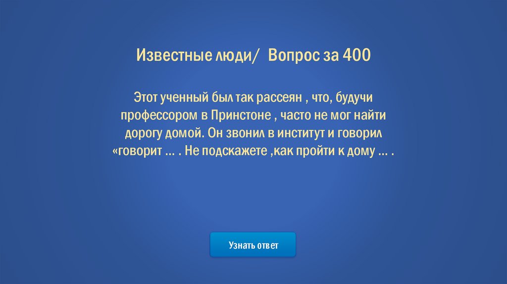 6. Правильный ответ Известные люди / Вопрос за 400 Альберт Эйнштейн