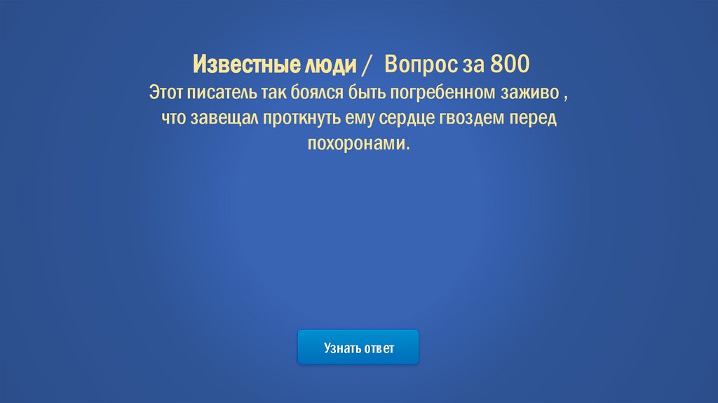10. Правильный ответ Известные люди / Вопрос за 800 Николай Гоголь