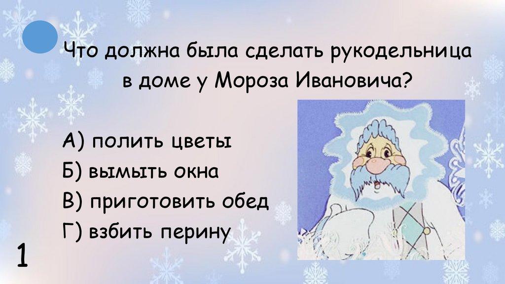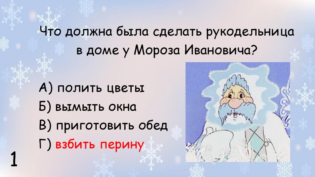 Что должна была сделать рукодельницав доме у Мороза Ивановича?