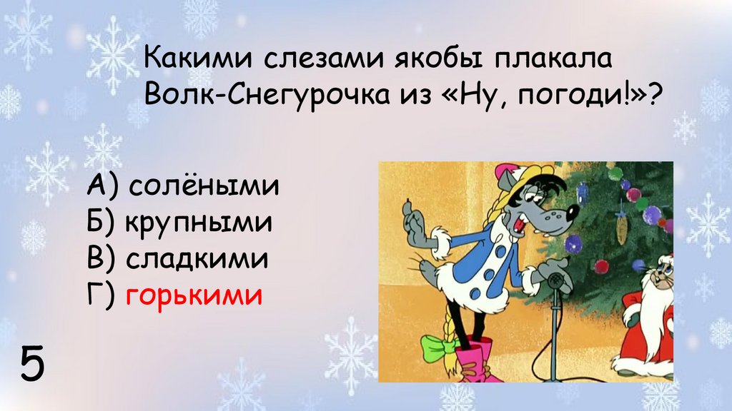 Какими слезами якобы плакалаВолк-Снегурочка из «Ну, погоди!»?